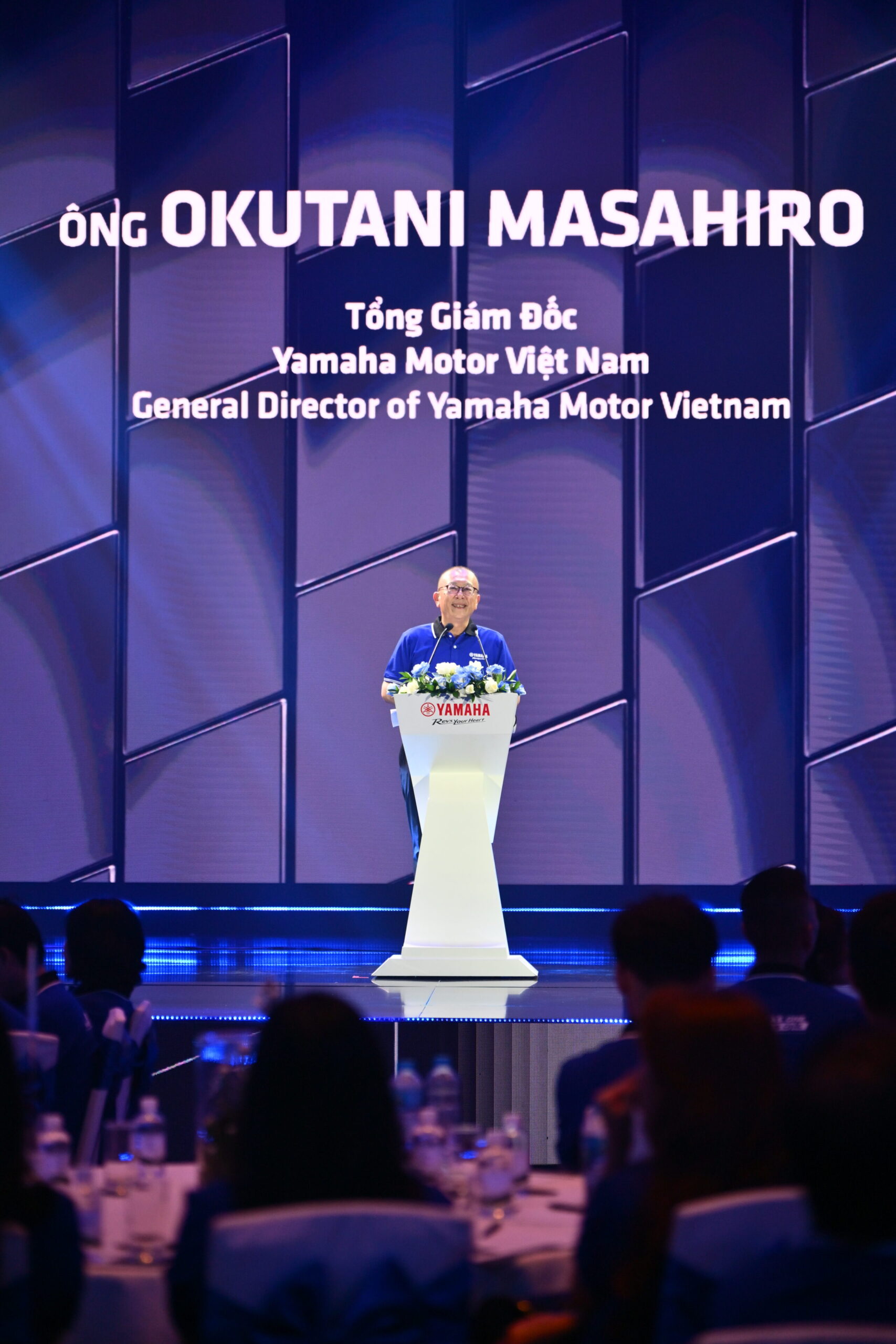 ↑ Ông Okutani Masahiro (Tổng Giám Đốc công ty Yamaha Motor Việt Nam) chia sẻ những thông điệp từ Yamaha Motor Việt Nam.