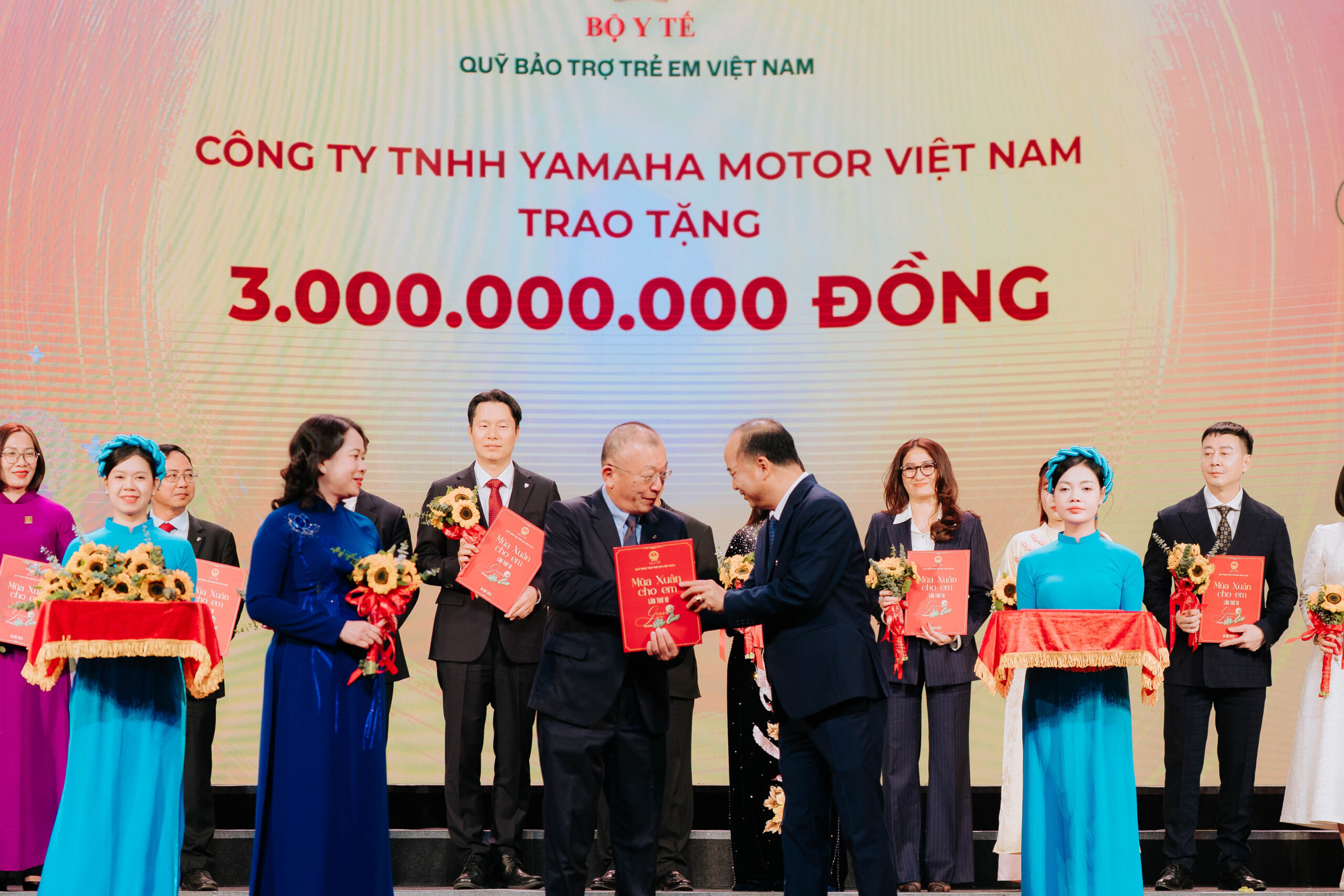 Trong khuôn khổ chương trình “Mùa xuân cho em” lần thứ 19 – năm 2025, Tổng Giám Đốc Yamaha Motor Việt Nam – Ông Okutani Masahiro vinh dự được Phó Chủ tịch nước CHXHCN Việt Nam – Bà Võ Thị Ánh Xuân và Giám đốc Quỹ Bảo trợ trẻ em Việt Nam – Ông Đinh Tiến Hải trao hoa và chứng nhận, để ghi nhận những đóng góp thiết thực của doanh nghiệp trong hành trình đồng hành cùng Quỹ Bảo trợ Trẻ em Việt Nam.